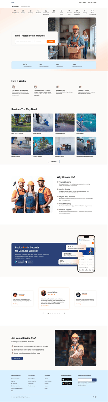 See how we designed the Fixsy Website to turn fragmented service requests into a seamless experience, empowering users to choose their service easily.